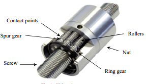 accumulative deformation of shaft sections of screw and nut. A typical planetary roller screw mechanism is taken as